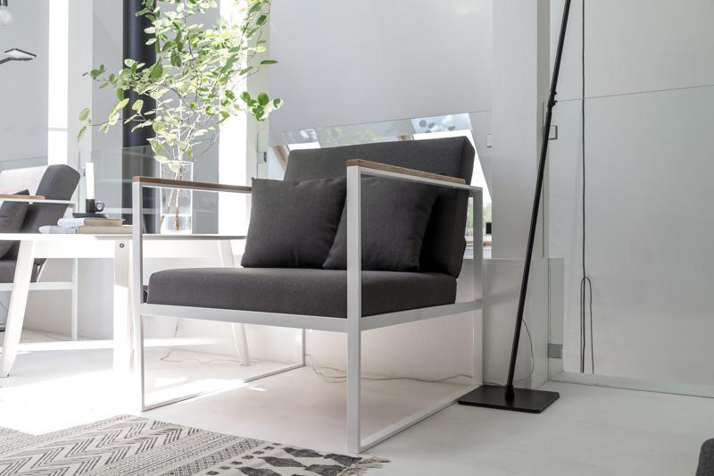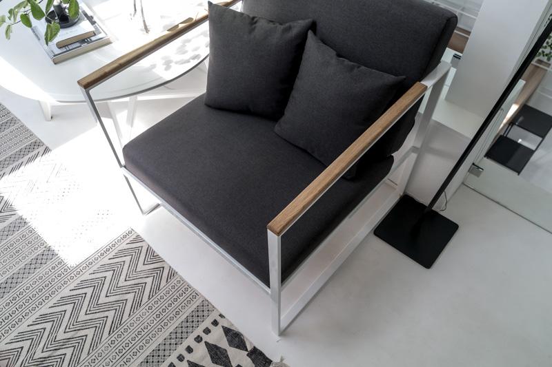 в белом цвете с темно-серой тканью подушек. Мастера компании Solania вручную изготовили узкие вставки из массива дуба